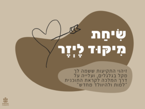 בשיחת מיקוד לייזר נזהה יחד איפה את נמצאת עכשיו, לאן את רוצה להגיע ומהי התמיכה והליווי הנדרשים כדי לעשות זאת בדיוק המקסימלי תוך הקשבה פנימית וזיהוי מקור הפער בין עכשיו לאופק המיוחל.